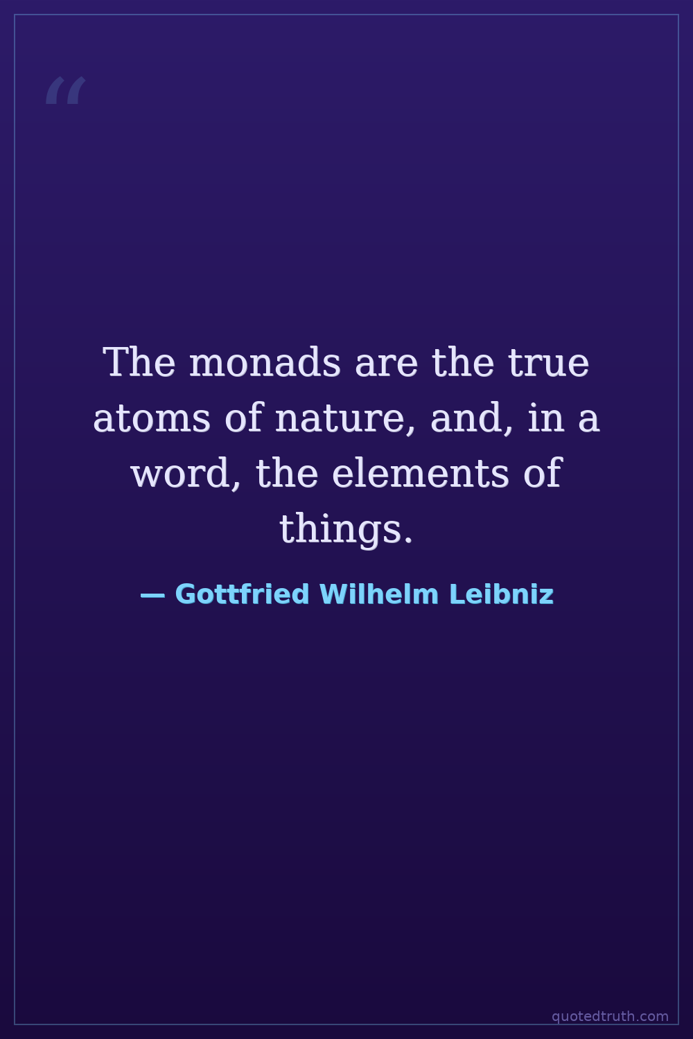 The monads are the true atoms of nature, and, in a word, the elements of things.