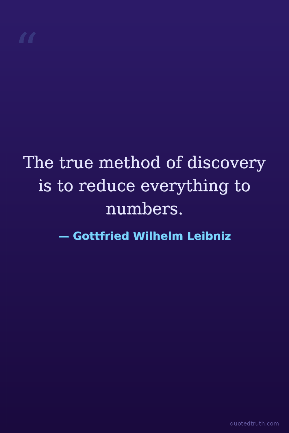 The true method of discovery is to reduce everything to numbers.