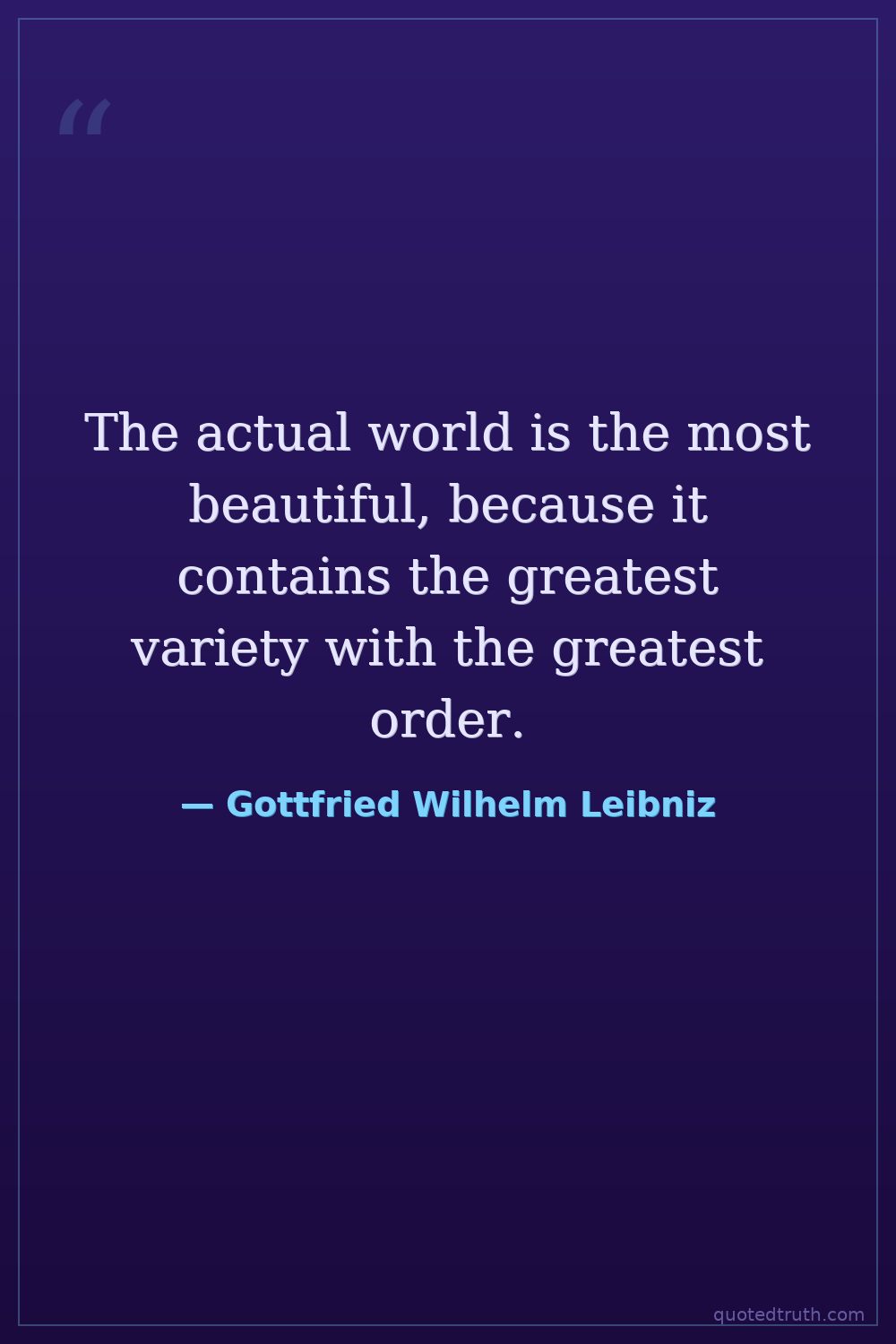 The actual world is the most beautiful, because it contains the greatest variety with the greatest order.