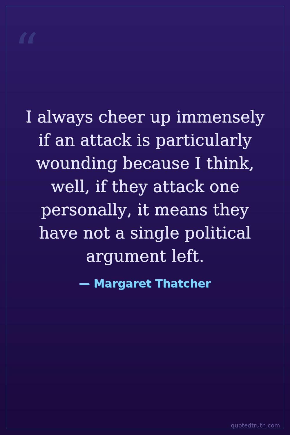I always cheer up immensely if an attack is particularly wounding because I think, well, if they attack one personally, it means they have not a single political argument left.