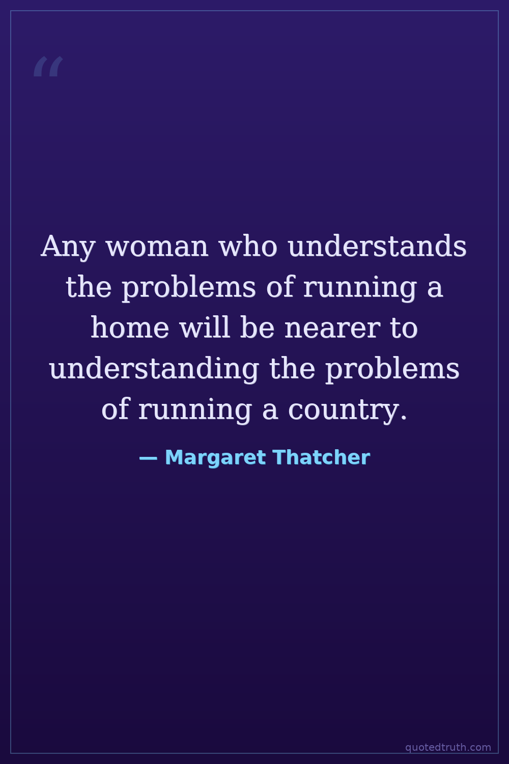 Any woman who understands the problems of running a home will be nearer to understanding the problems of running a country.