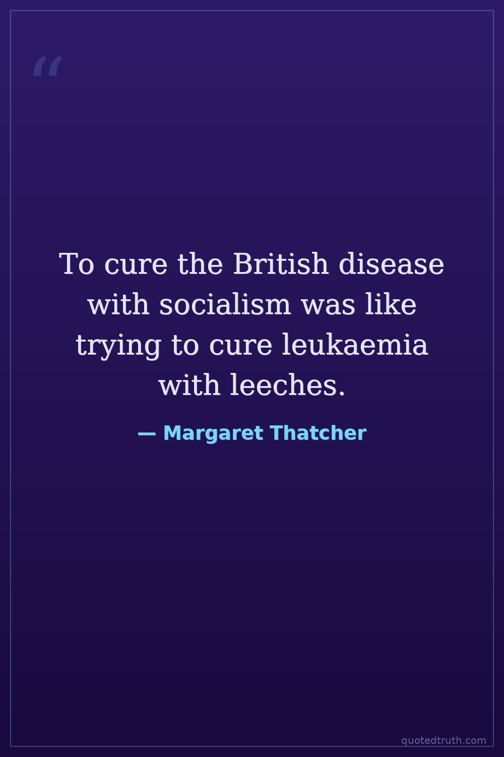 To cure the British disease with socialism was like trying to cure leukaemia with leeches.
