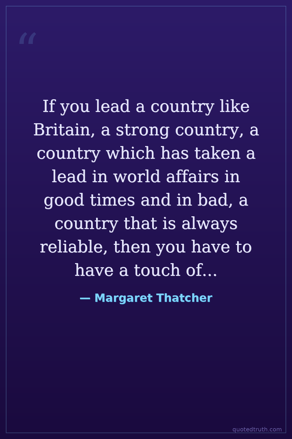 If you lead a country like Britain, a strong country, a country which has taken a lead in world affairs in good times and in bad, a country that is always reliable, then you have to have a touch of iron about you.