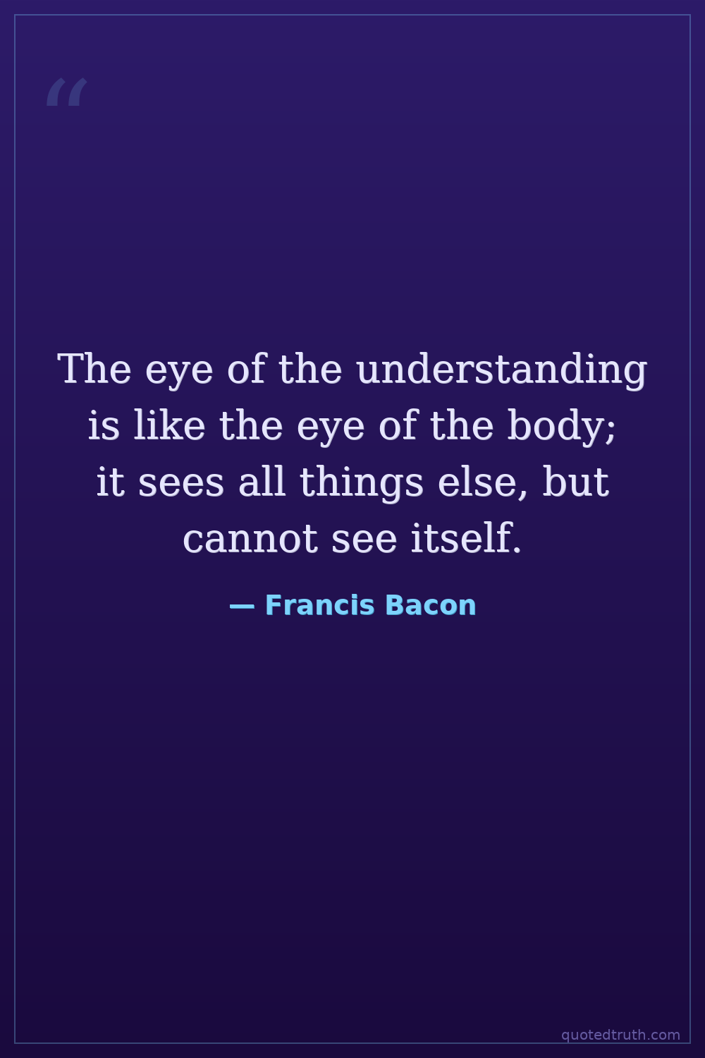 The eye of the understanding is like the eye of the body; it sees all things else, but cannot see itself.