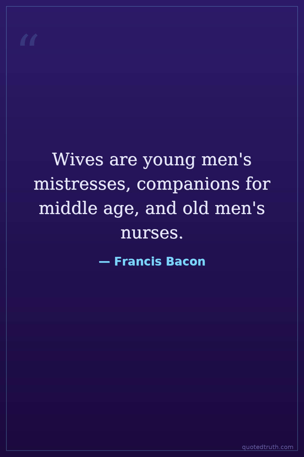 Wives are young men's mistresses, companions for middle age, and old men's nurses.