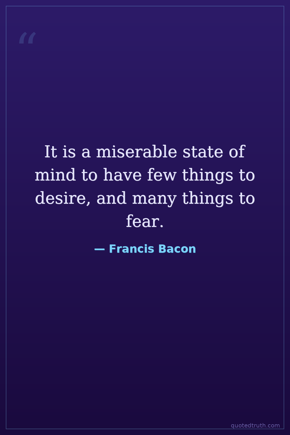 It is a miserable state of mind to have few things to desire, and many things to fear.