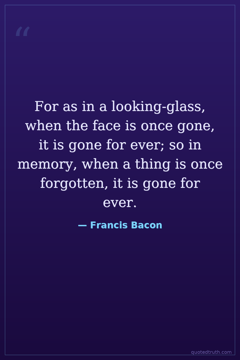 For as in a looking-glass, when the face is once gone, it is gone for ever; so in memory, when a thing is once forgotten, it is gone for ever.
