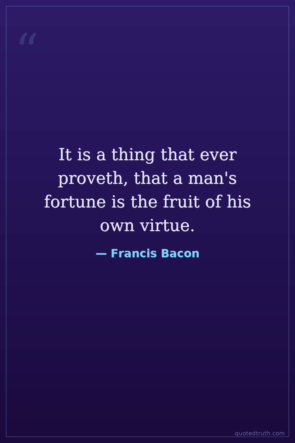 It is a thing that ever proveth, that a man's fortune is the fruit of his own virtue.