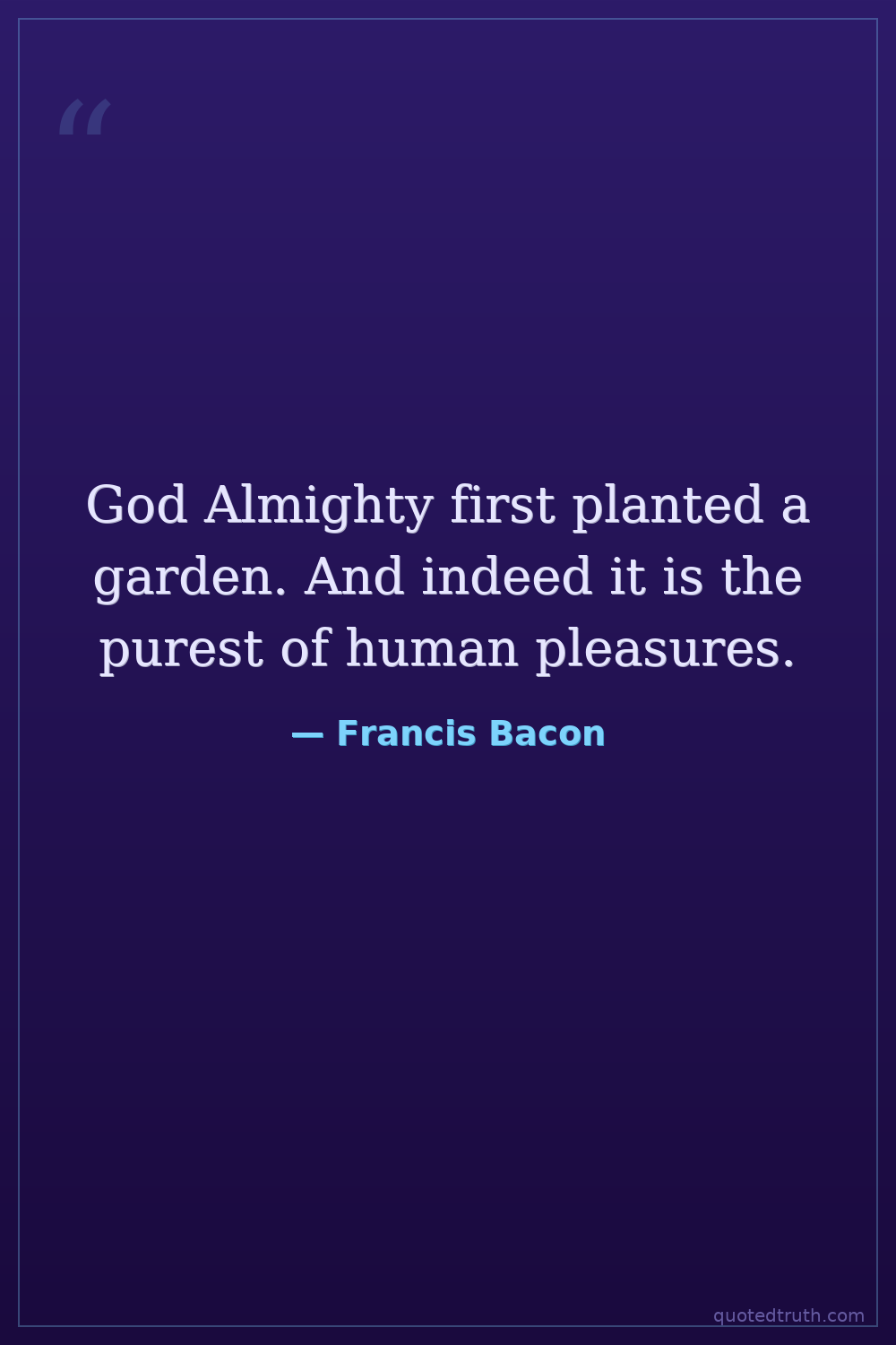 God Almighty first planted a garden. And indeed it is the purest of human pleasures.