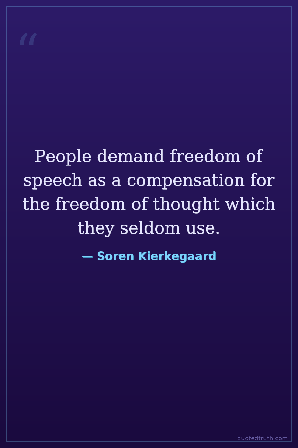 People demand freedom of speech as a compensation for the freedom of thought which they seldom use.