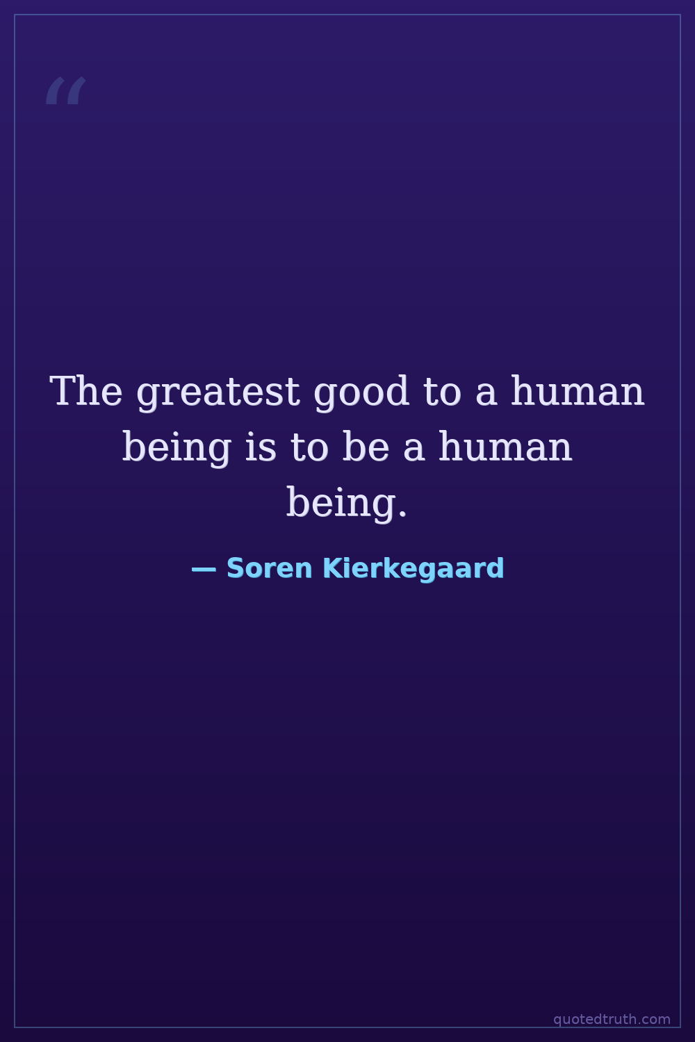 The greatest good to a human being is to be a human being.