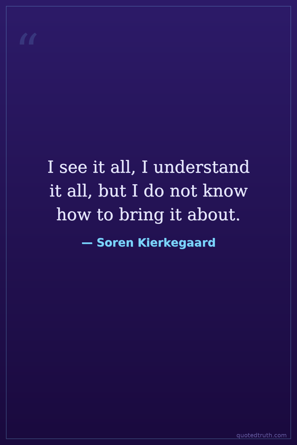 I see it all, I understand it all, but I do not know how to bring it about.