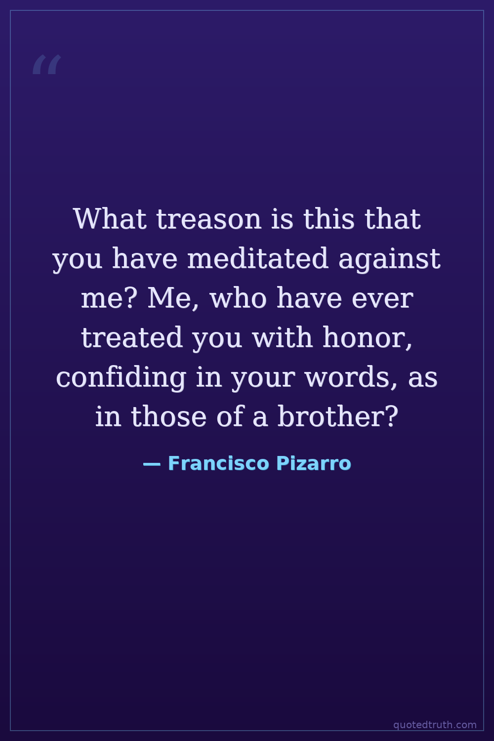 What treason is this that you have meditated against me? Me, who have ever treated you with honor, confiding in your words, as in those of a brother?