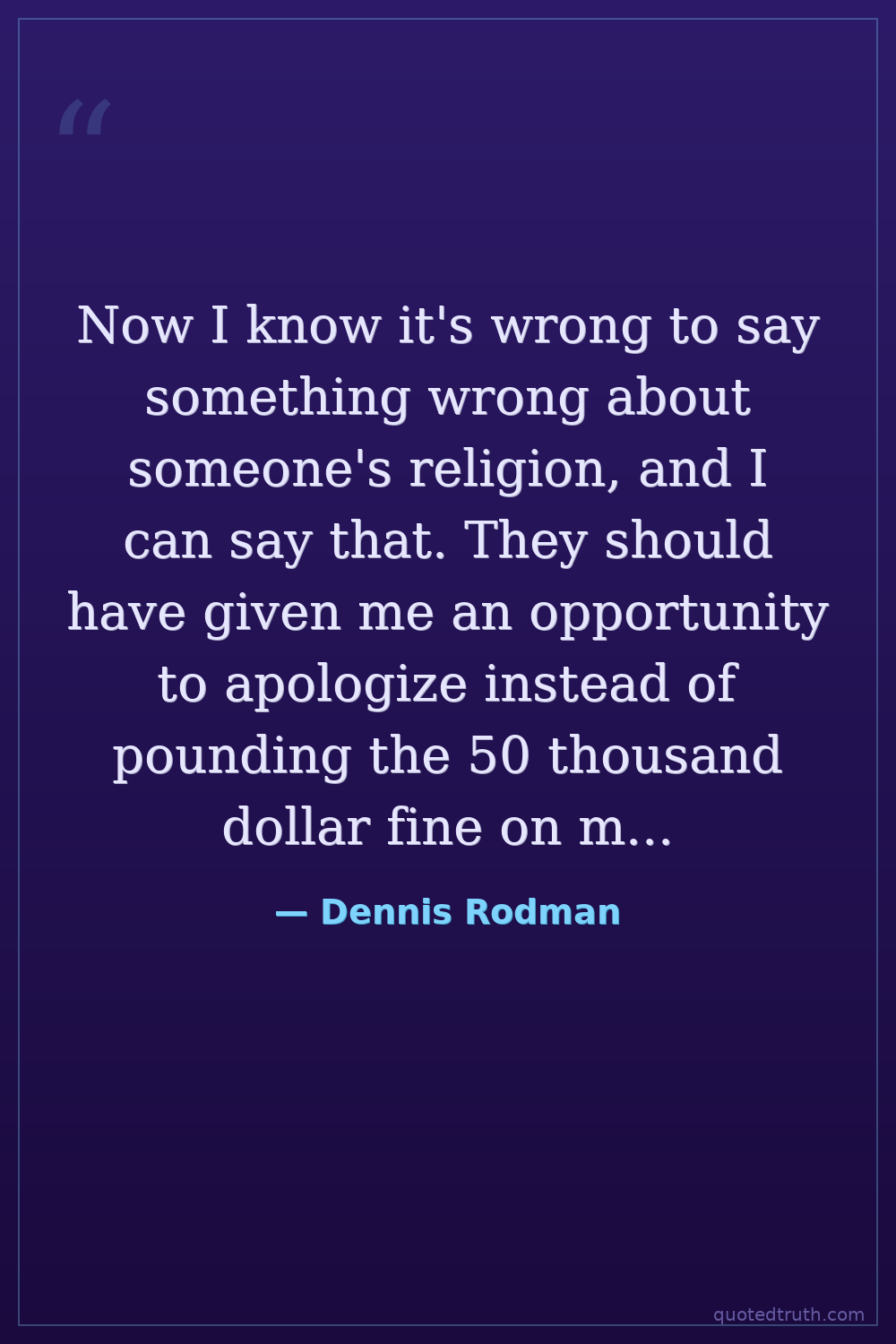 Now I know it's wrong to say something wrong about someone's religion, and I can say that. They should have given me an opportunity to apologize instead of pounding the 50 thousand dollar fine on me, which had nothing to do with the NBA. I offended a lot of people, and I am very sorry. Instead of giving 50 thousand to the league, I should've given it to the Mormons.