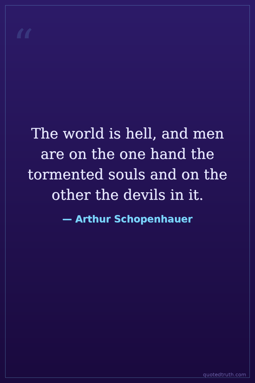 The world is hell, and men are on the one hand the tormented souls and on the other the devils in it.