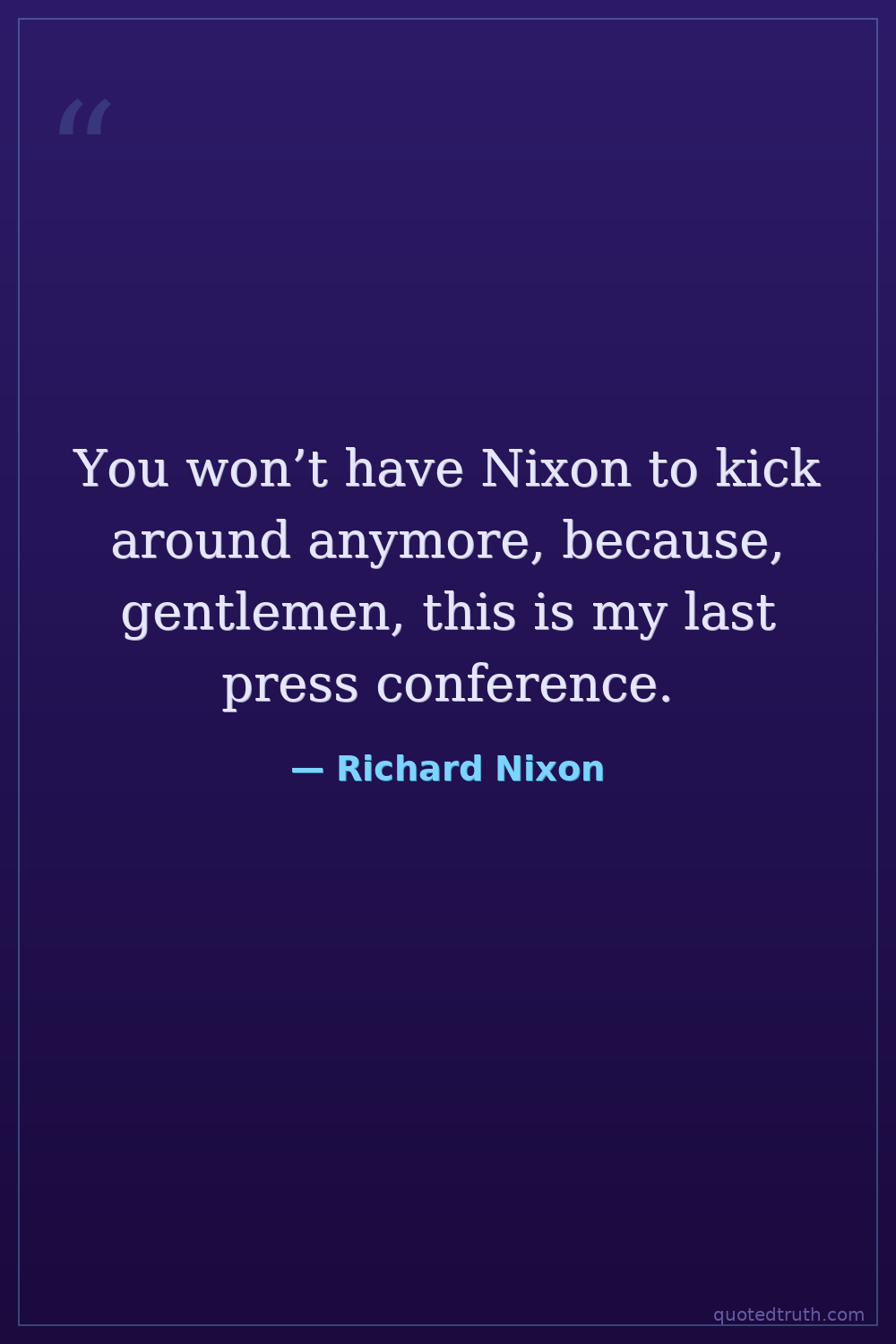 You won’t have Nixon to kick around anymore, because, gentlemen, this is my last press conference.