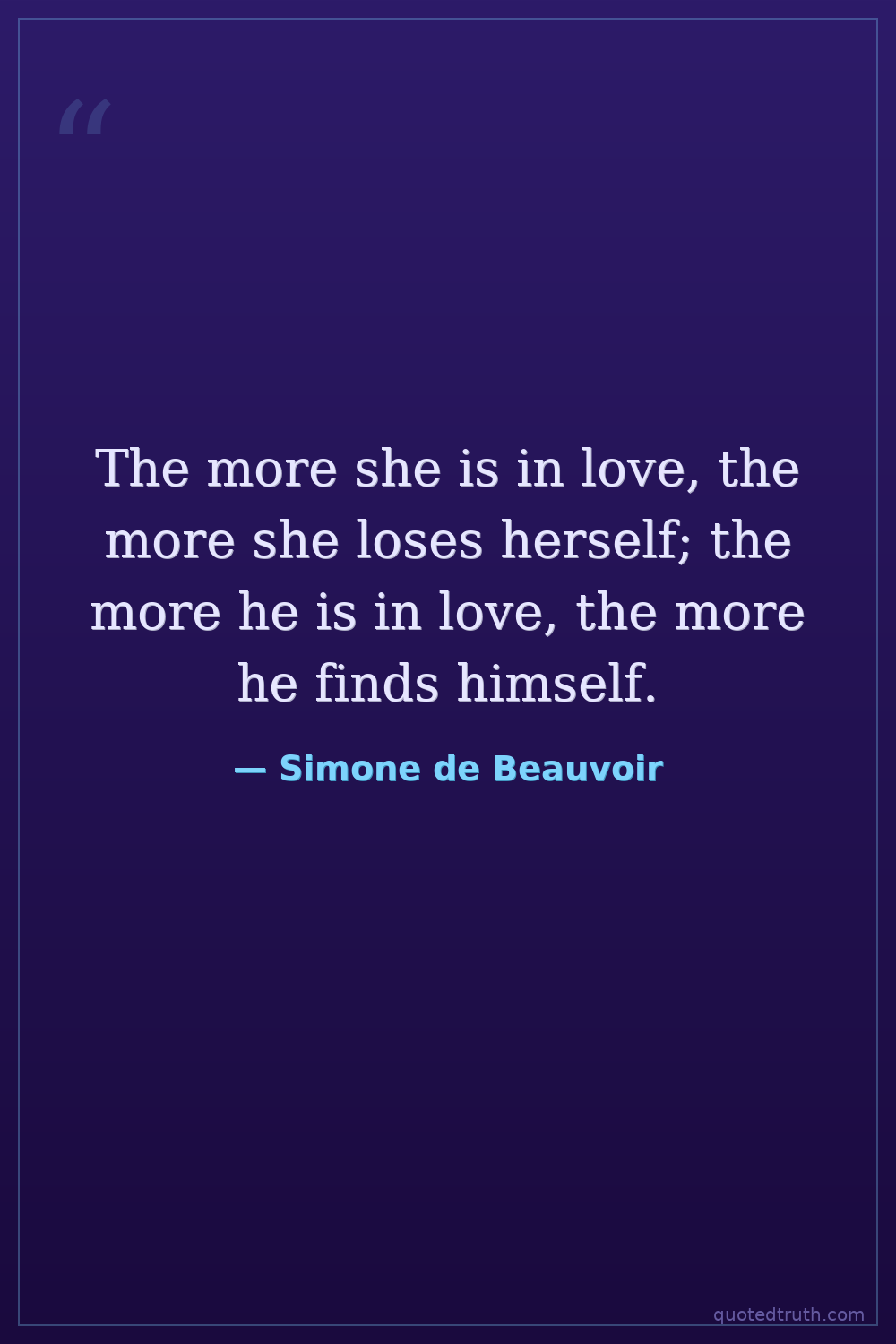 The more she is in love, the more she loses herself; the more he is in love, the more he finds himself.