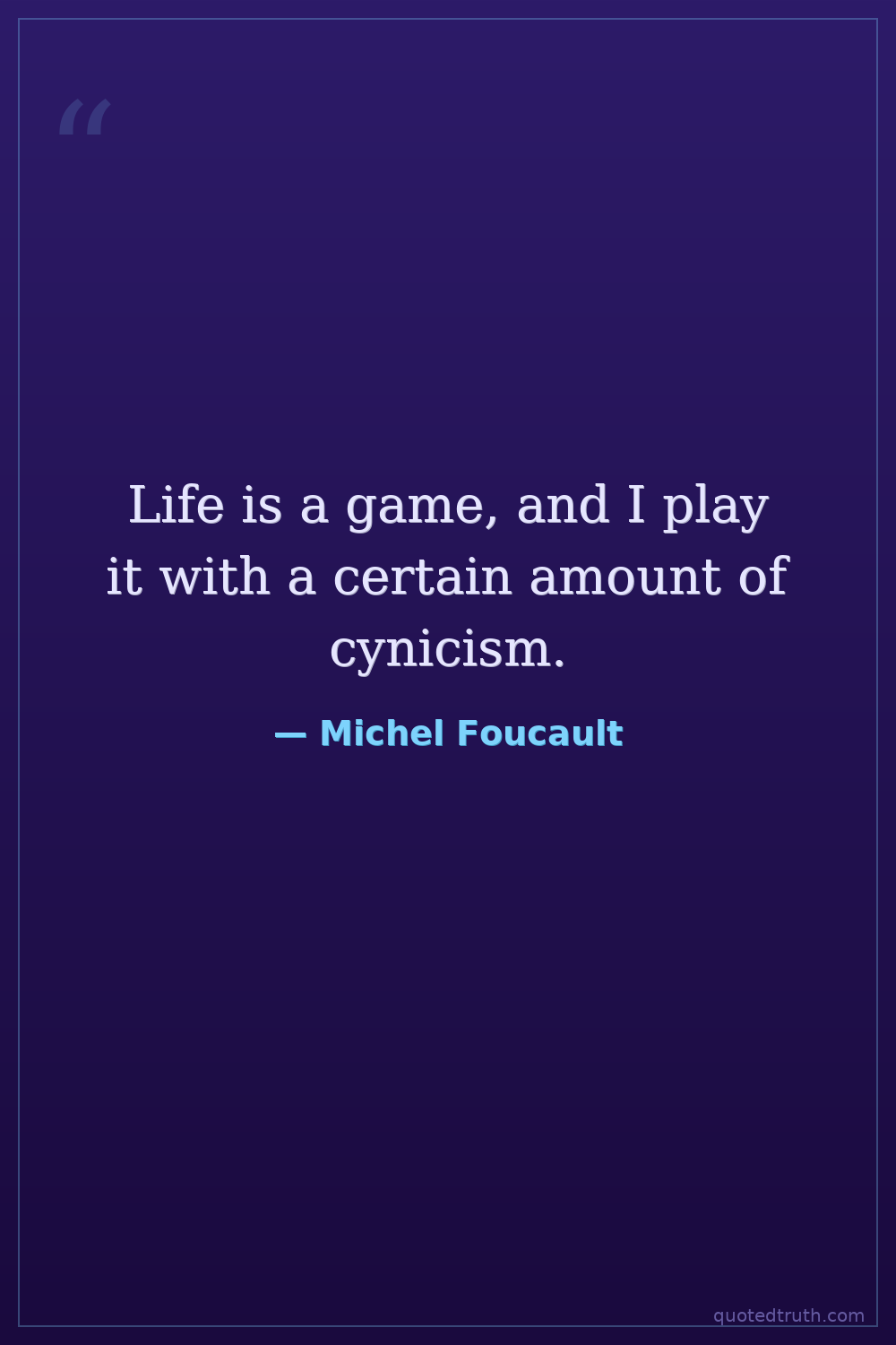 Life is a game, and I play it with a certain amount of cynicism.