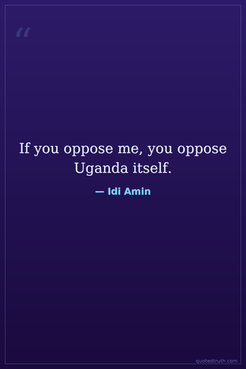 If you oppose me, you oppose Uganda itself.
