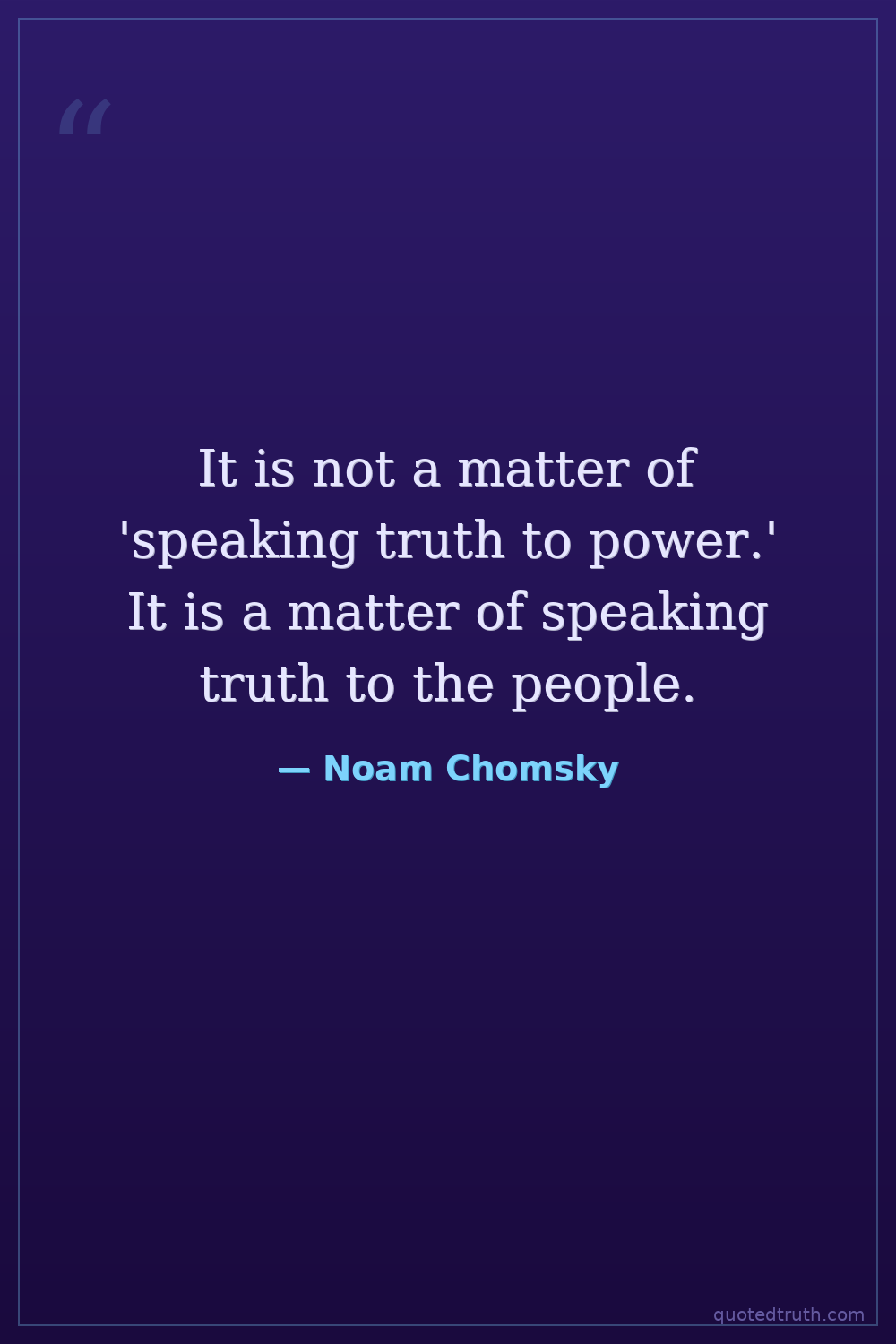 It is not a matter of 'speaking truth to power.' It is a matter of speaking truth to the people.