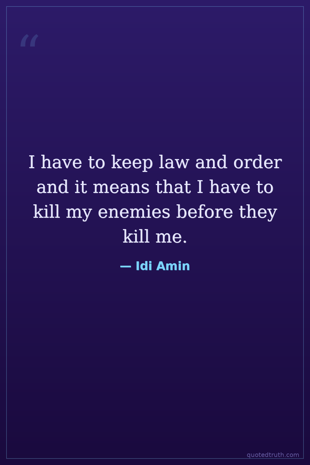 I have to keep law and order and it means that I have to kill my enemies before they kill me.