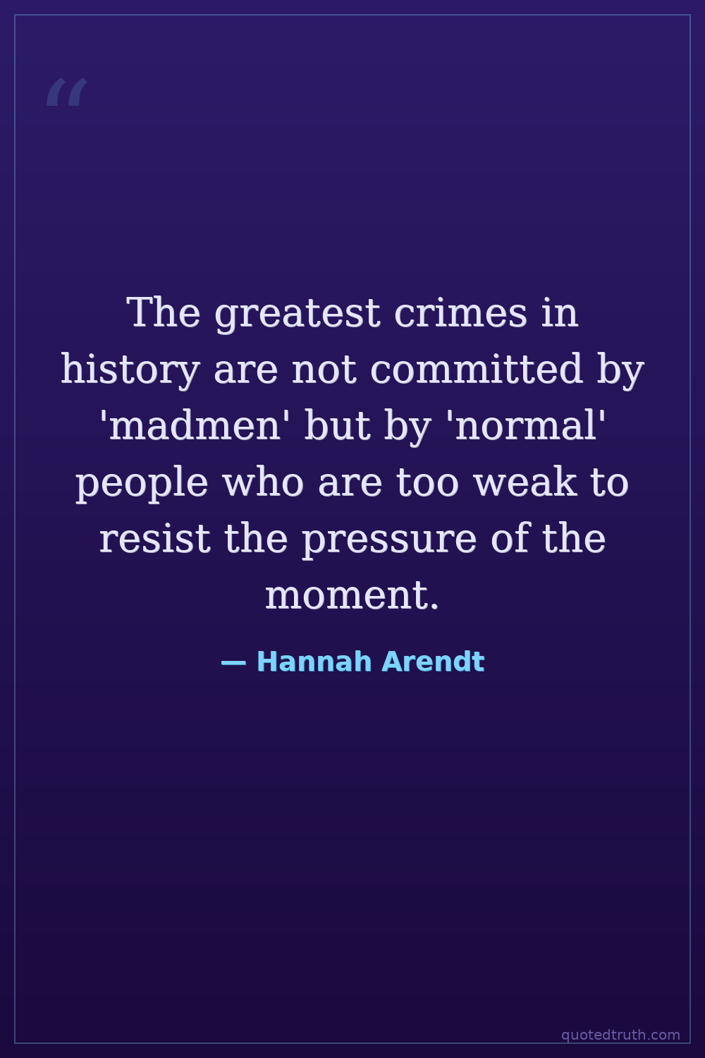 The greatest crimes in history are not committed by 'madmen' but by 'normal' people who are too weak to resist the pressure of the moment.