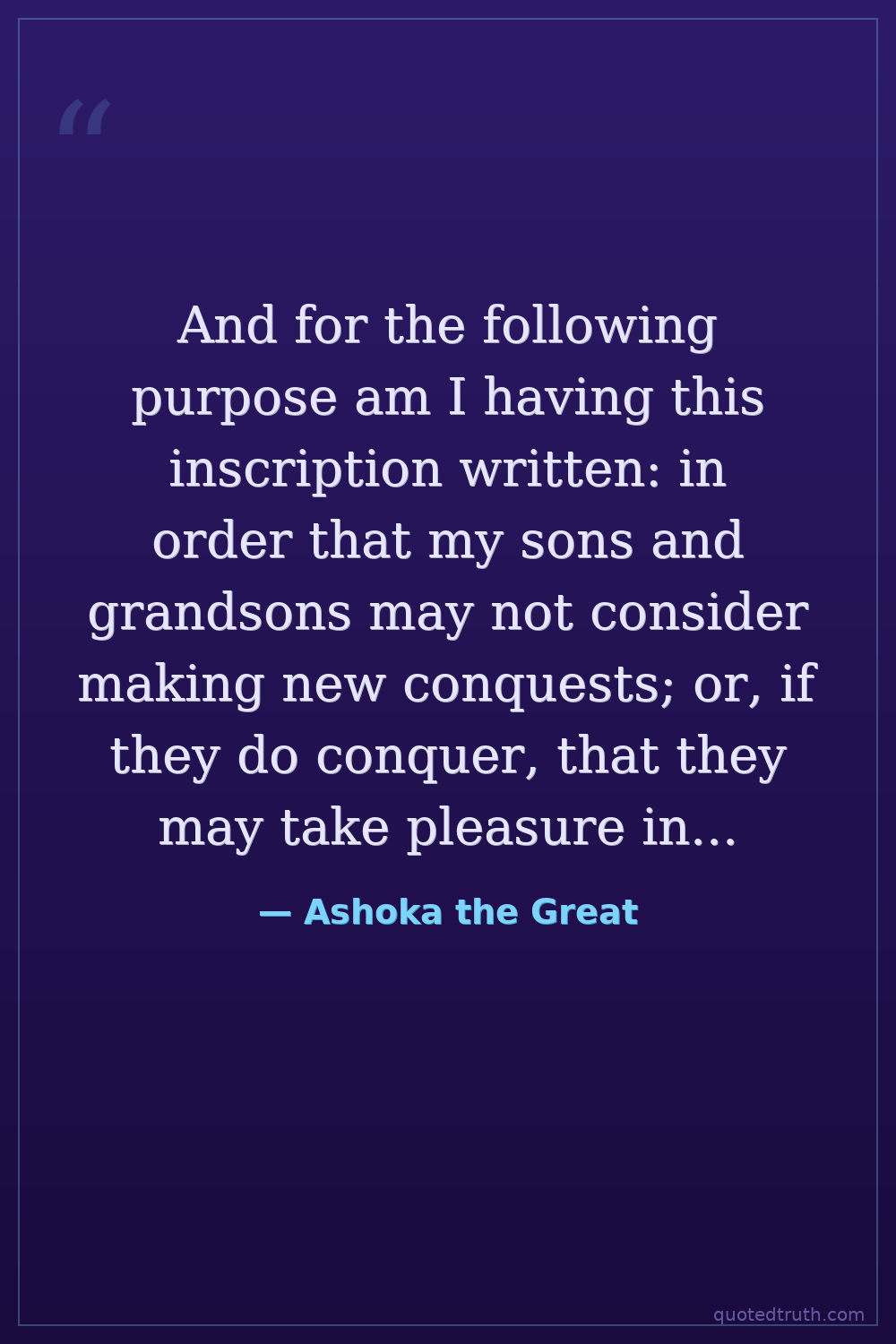 And for the following purpose am I having this inscription written: in order that my sons and grandsons may not consider making new conquests; or, if they do conquer, that they may take pleasure in mercy and light punishments; and that they may regard the conquest by piety as the only true conquest.