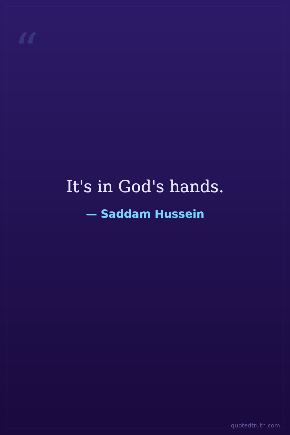 It's in God's hands.