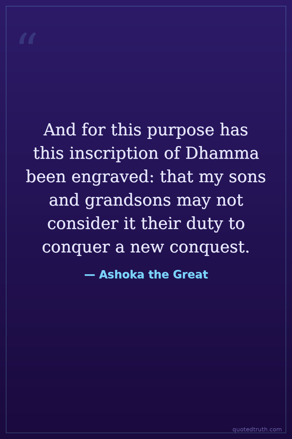 Controversial"I have had this Dhamma edict written so that my sons and great-grandsons should not think of making new conquests."