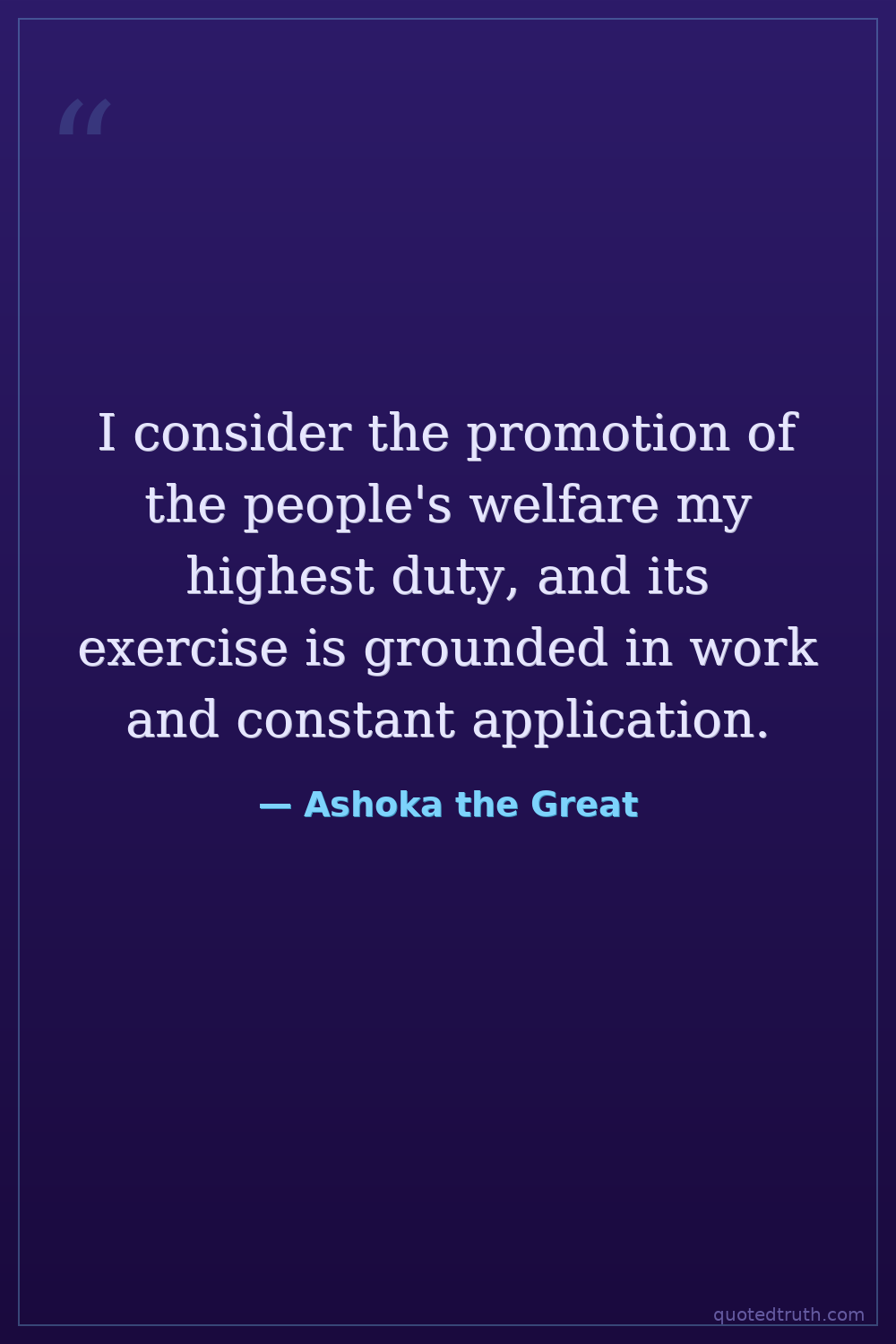 I consider the promotion of the people's welfare my highest duty, and its exercise is grounded in work and constant application.