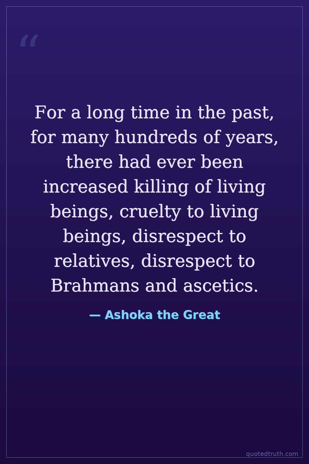 Controversial"This Dhamma edict was written by me after I had been consecrated twenty-six years. I have caused this Dhamma edict to be inscribed for the following purpose: that it may endure for a long time, and th…"