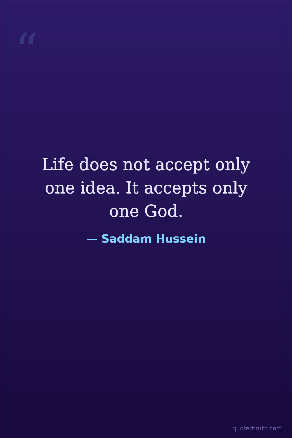 Life does not accept only one idea. It accepts only one God.
