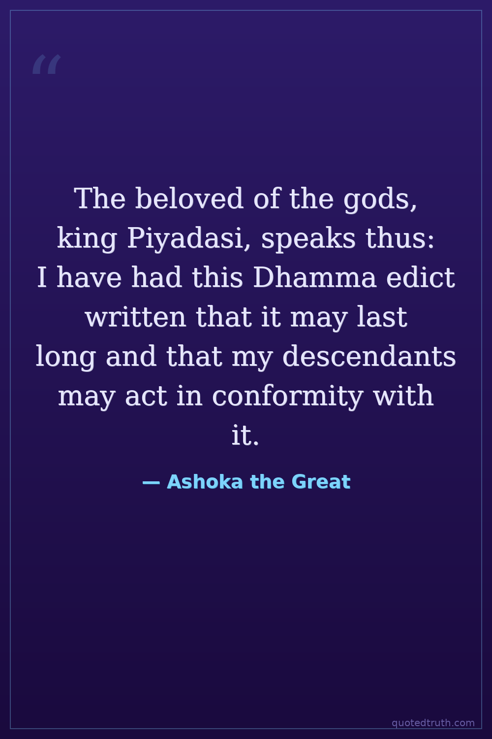 Controversial"I have had this Dhamma edict written so that my sons and grandsons and great-grandsons may follow it and live according to it."