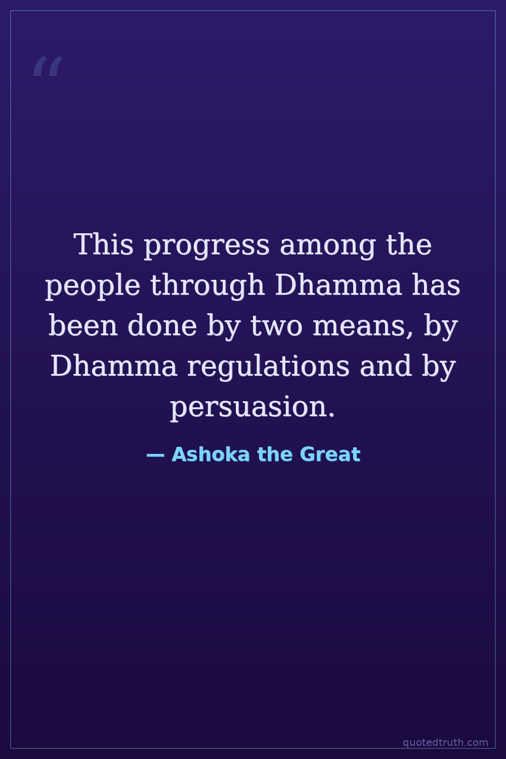 Strange & Unusual"This progress among the people through Dhamma has been done by two means, by Dhamma regulations and by persuasion. Of these, Dhamma regulation is of little effect, while persuasion has much more effec…"